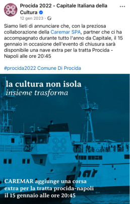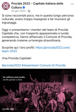 Nel 2022, anno in cui Procida è stata Capitale Italiana della Cultura, Bewe ha curato la comunicazione di tutte le attività e gli eventi del programma culturale, garantendo un presidio costante dei canali digitali e un racconto continuativo dell’anno da Capitale.